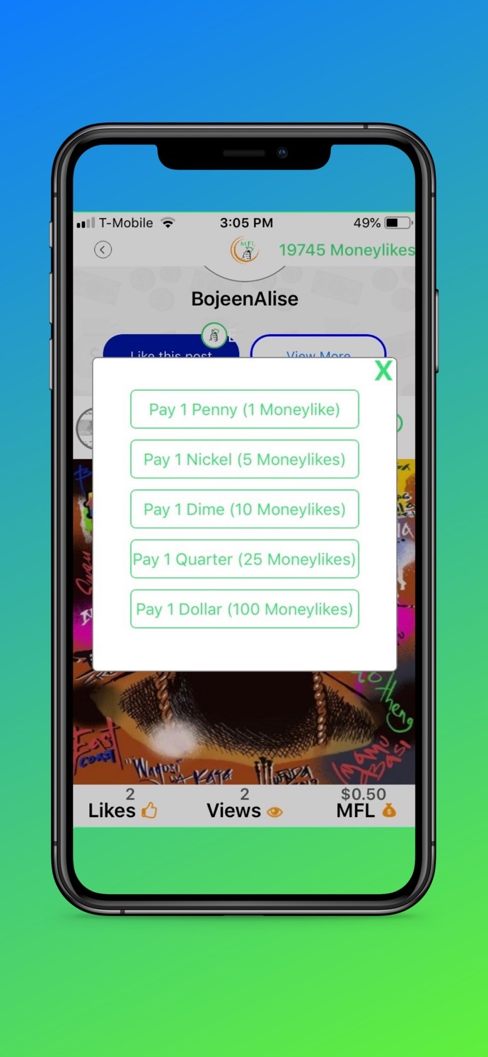 MFL is a unique way to show appreciation for an artist’s skills. If you like an artist’s work, you can appreciate it with a micropayment along with a "like". It is a virtual adaptation of the real-world phenomenon called busking or street performance where, if you like a street artist’s performance, you appreciate their skills via donations & tips using special can or box. MFL gives artists, painters, performers, photographers, videographers and serious content creators a virtual space or street to perform and collect money. For audiences, MFL gives you an opportunity to show to your favorite artists how much you really like their content and how much you’re enjoying. On MFL, you can be both a content creator and a content consumer or audience at the same time. Trade MoneyLikes with fellow content creators, monetize your followers, find out how much they really appreciate the content you’re creating.