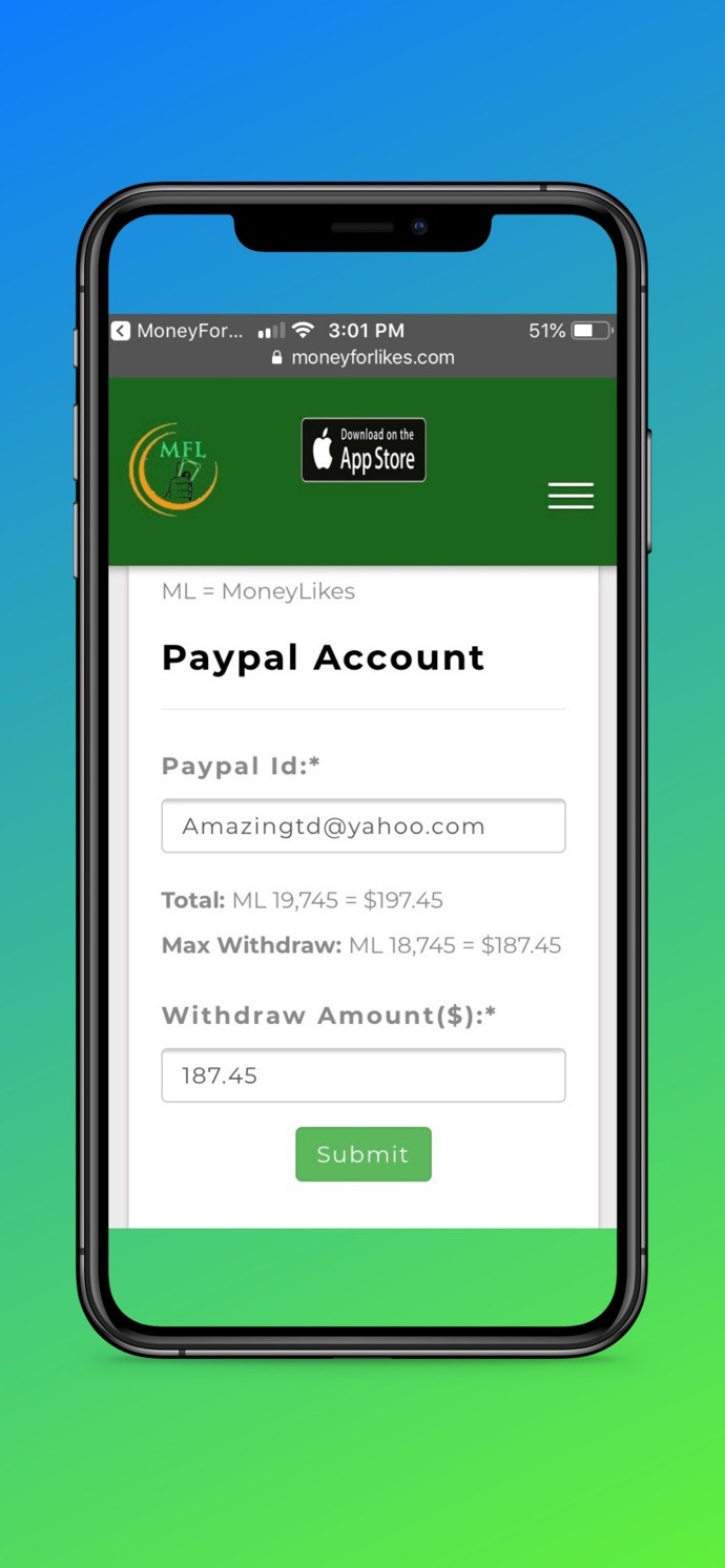 • Withdraw your Moneylikes easily to your bank, PayPal, Cash or Venmo account with ZERO transaction fee.