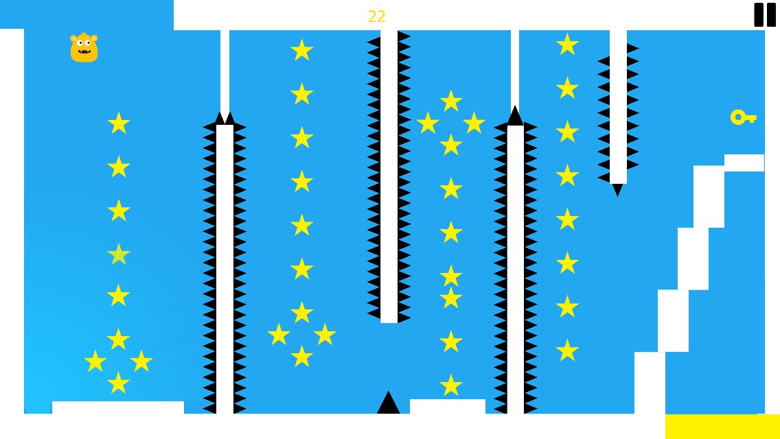 1. The jumping monster needs to move in the direction where you can see stars and keys.