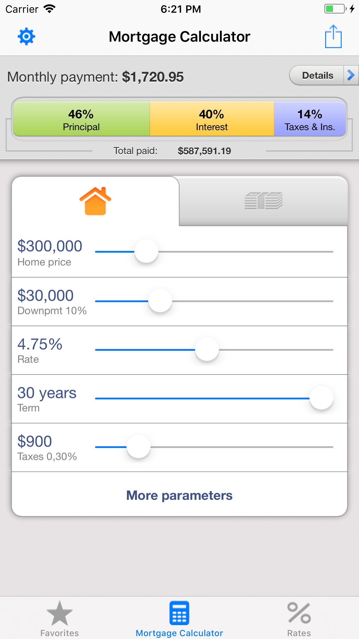• Easy to use mortgage calculator including property taxes, insurances and HOA fees