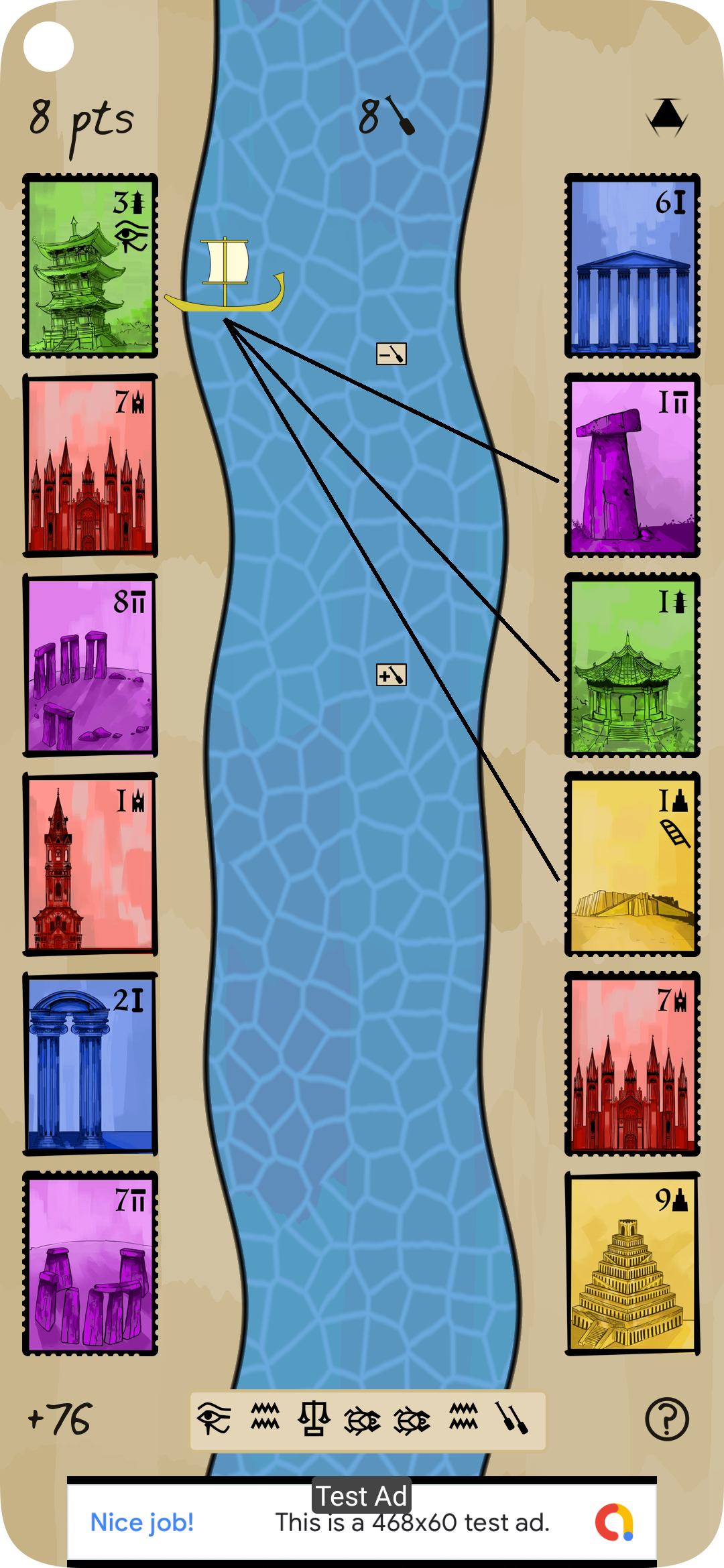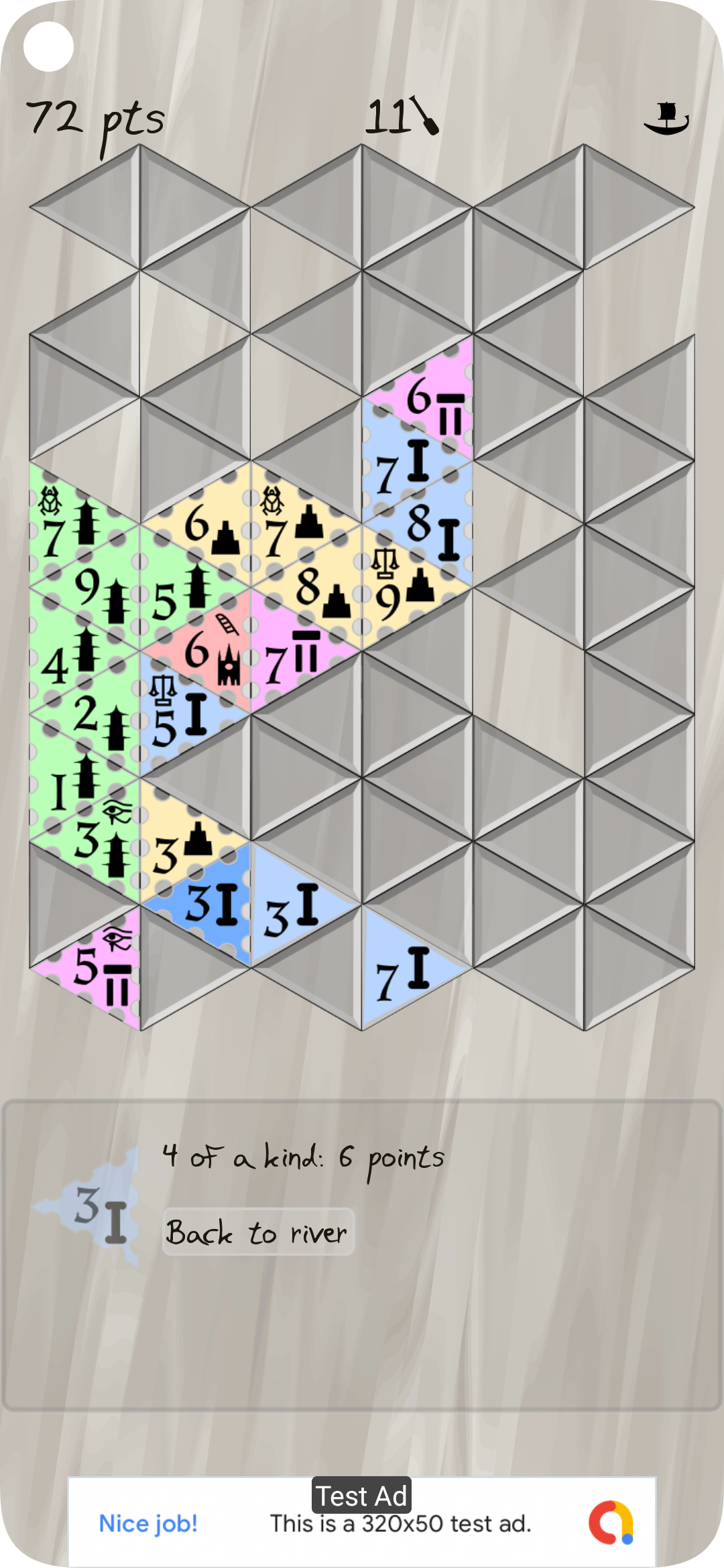 Mosaic River is a relaxing solitaire game from the creator of Semantle and Surfwords . On each turn, you'll sail your boat across the river and downstream, picking the mosaic tile to collect. You'll then place the tiles into a mosaic, trying to make melds (like straights and flushes) to score points.