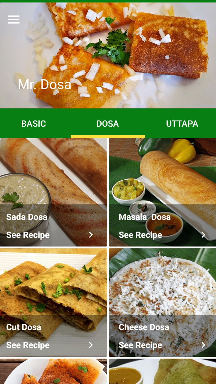 This app represents many varieties of dosa And Uttapa this are as: