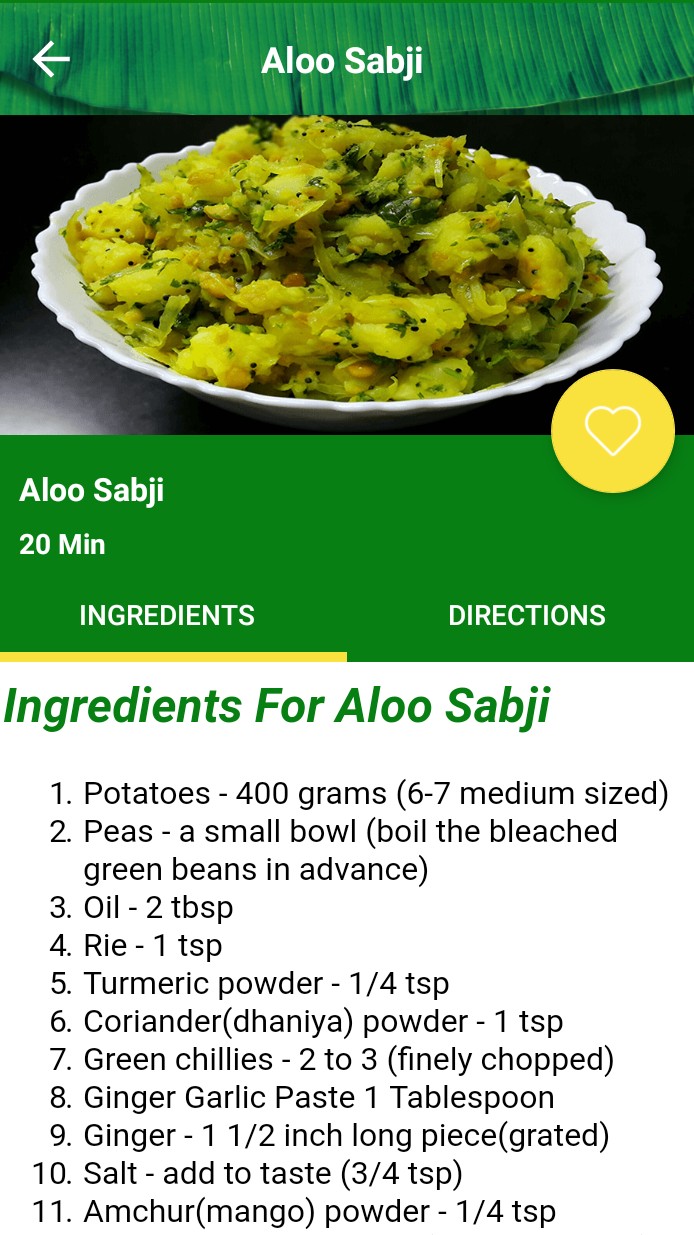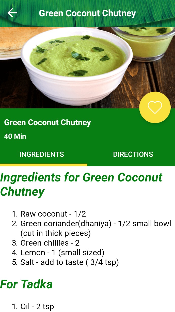 - All recipes are described with Ingredients, Directions and Images.