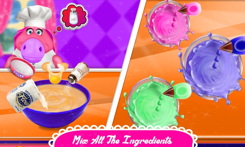 Hi Guys! Today Mr. fat unicorn is in the mood to do some cooking, so he decided to make a Unicorn Cake for his fans! But Mr. fat unicorn wants you to help him baking his dessert, he is also planning to make a Slim unicorn cake as he don't want his friends to make fun of his creation. Are you up for his rainbow cake challenge ?