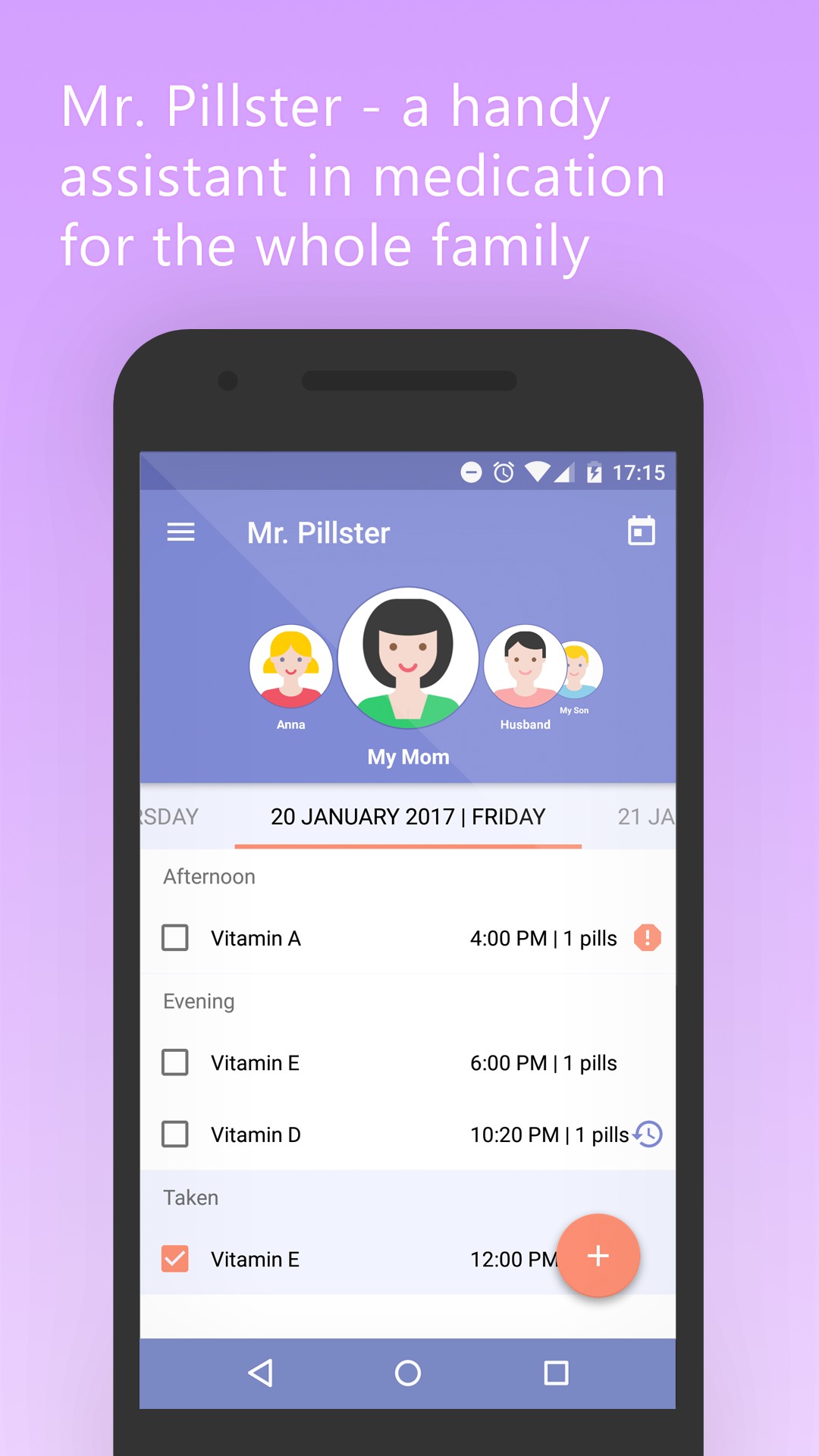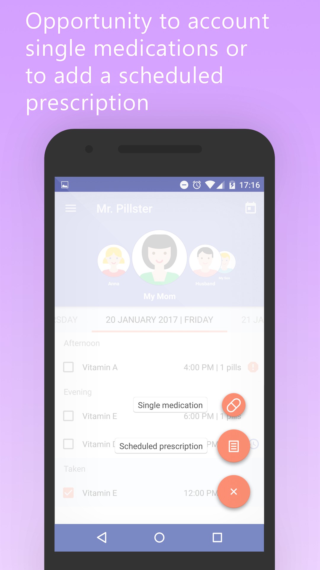 Your mobile phone is always with you. Mr. Pillster will be your ideal helper who doesn’t allow you to forget to take important medication on time.