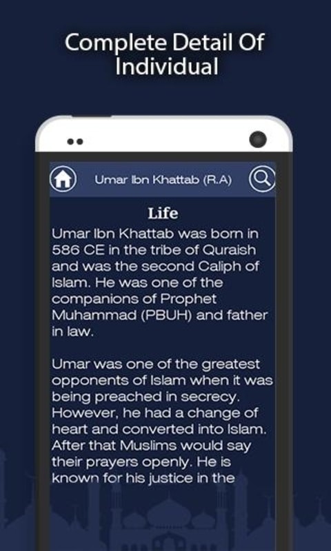 Family and Friends of Muhammad (PBUH) is an application that provides information about family members and renowned friends of Prophet Muhammad (PBUH). The application contains information about all the personalities divided in three parts, birth, life, and death respectively.