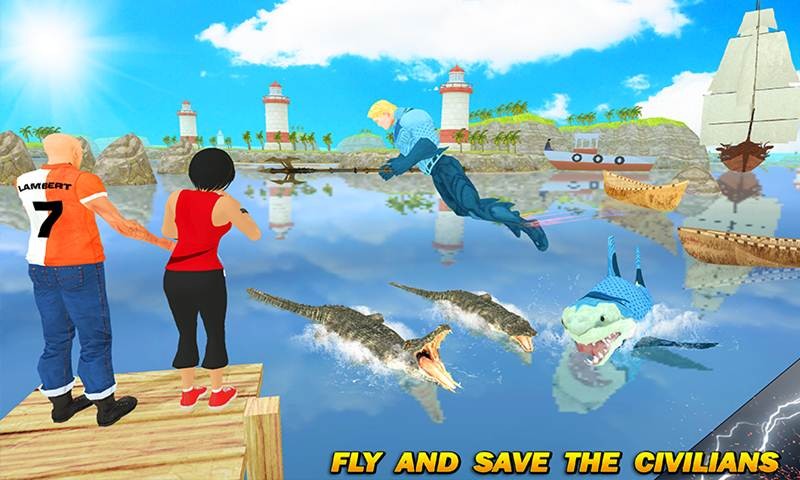 Once again back with another game in the series of Multi Action hero games with the brand new Multi Aqua Shark Hero Vs Sea Animals. Feel the Under Water world in 3D and experience the world of Ocean Creatures along with the most amazing Aqua Hero. Multi Aqua hero fight with dangerous sea Animals like wild whale and save the innocent civilians with the help of strange powers like trident attack