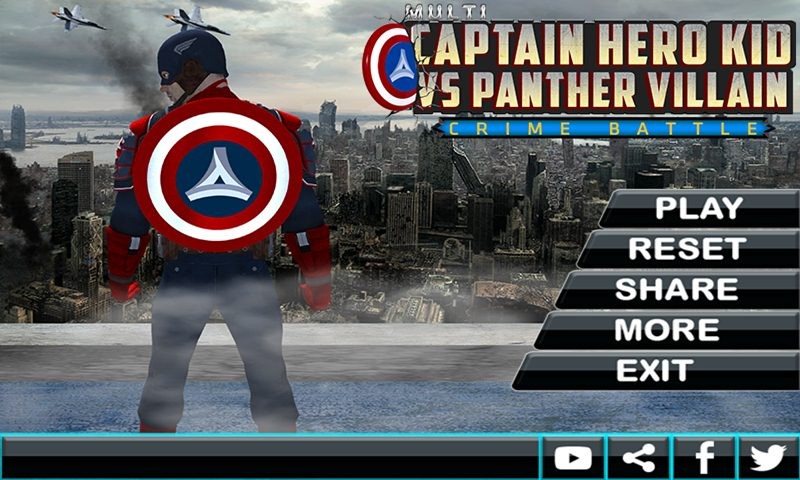 Multi Captain Hero Kid Vs Panther Villain Crime Battle action simulator especially designed for the super hero games lovers and the captain hero fans. Show your amazing fighting skills in the battle of justice, because no one will come to save the people of the curse city from the Panther villain, Czarnian Villain as well as from the brutal gangsters. The amazing shield of the multi captain hero safes him from the any rival attacks. Amazing 3D camera angles and furious martial art combos made this game to the best super hero games.