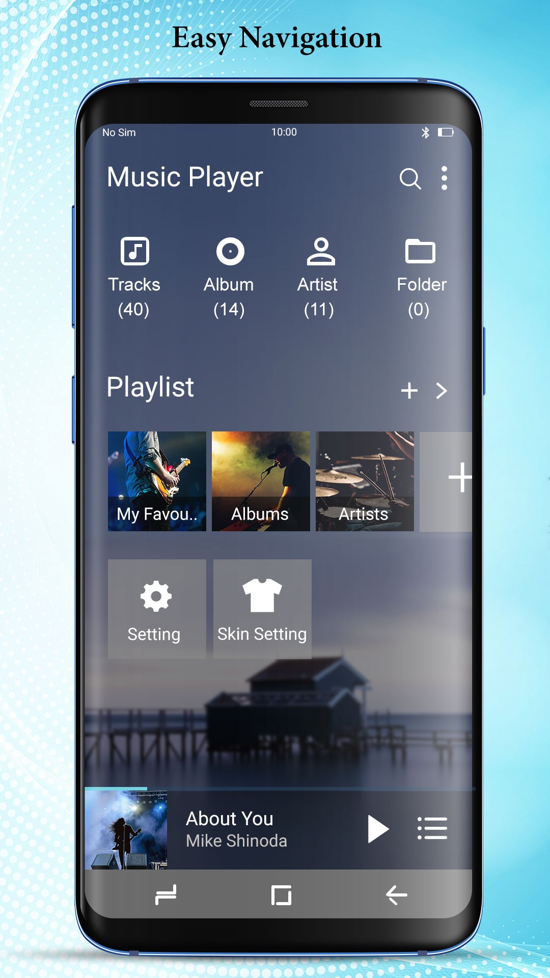 6. App Skin- Customizable background. Set any picture from the gallery as the app background also can change the app icon colors of the muzik player