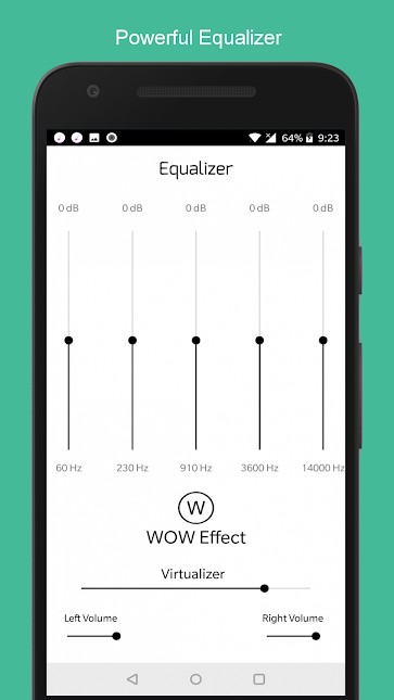 The unique equalizer make your music sounds more professional. You are free to control the music style and enjoy your musical. You can experience the WOW effect in equalizer.