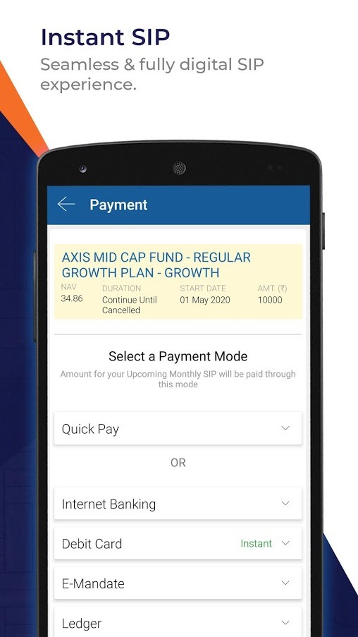 Start an instant mutual fund SIP, get intelligent recommendations, and track and monitor your mutual fund investments. The application also has other value-added features like free financial health check-up, expert advice, guest user login and notification tracker.