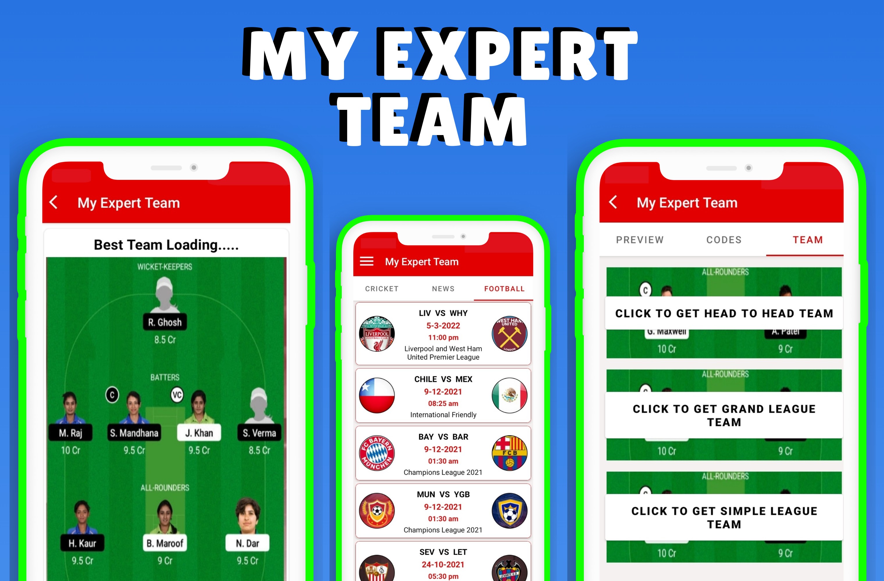 My Expert Team App Provides Fantasy Team and Prediction for Cricket & Football with Tips to Winning Along with Cricket & Football Latest News.