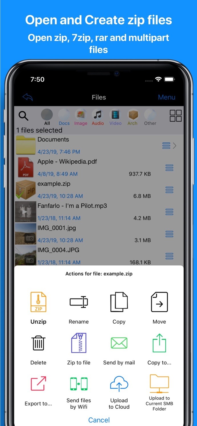 - Visualize and decompress zip, rar and 7zip files, also password protected.