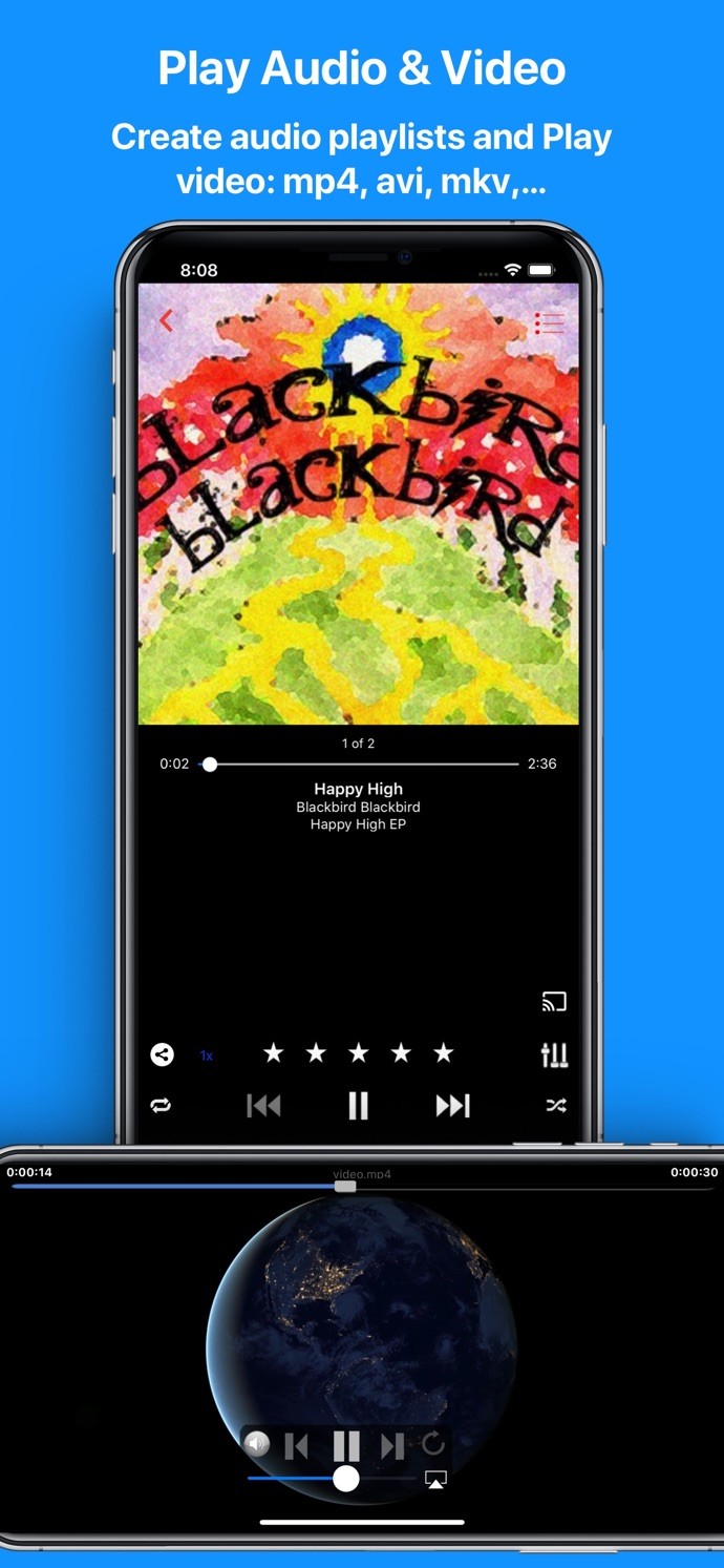 - Complete audio player with equalizer and playlists. Organize your audio files.