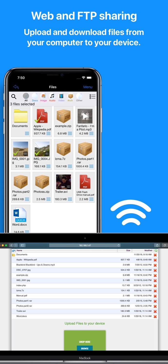 - Transfer files from your computer via Web or FTP, iTunes, cloud services, webDAV or Windows, Mac, NAS or Linux file shares. (smb2 and smb3)