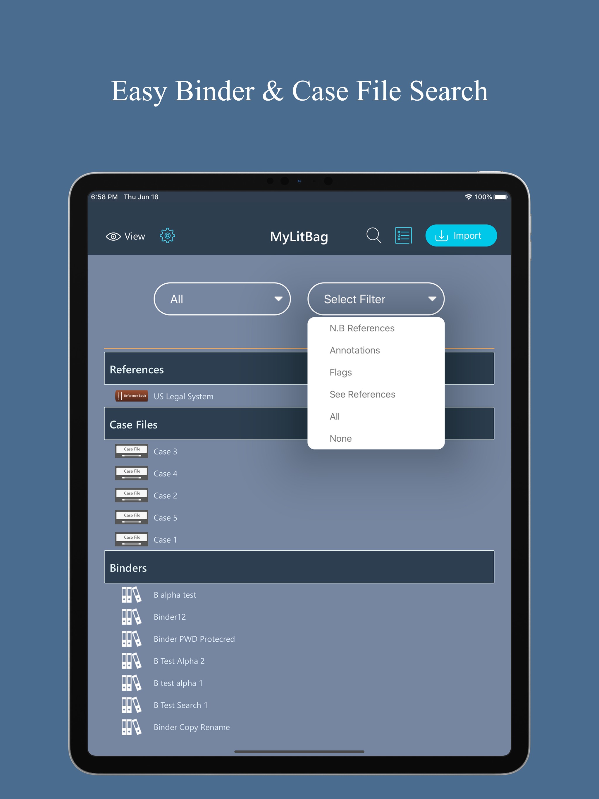 MyLitBag allows attorneys to practice at the highest level by providing a virtual library of binders and case files at their fingertips anywhere and at any time making MyLitBag the perfect legal document management app for attorneys.
