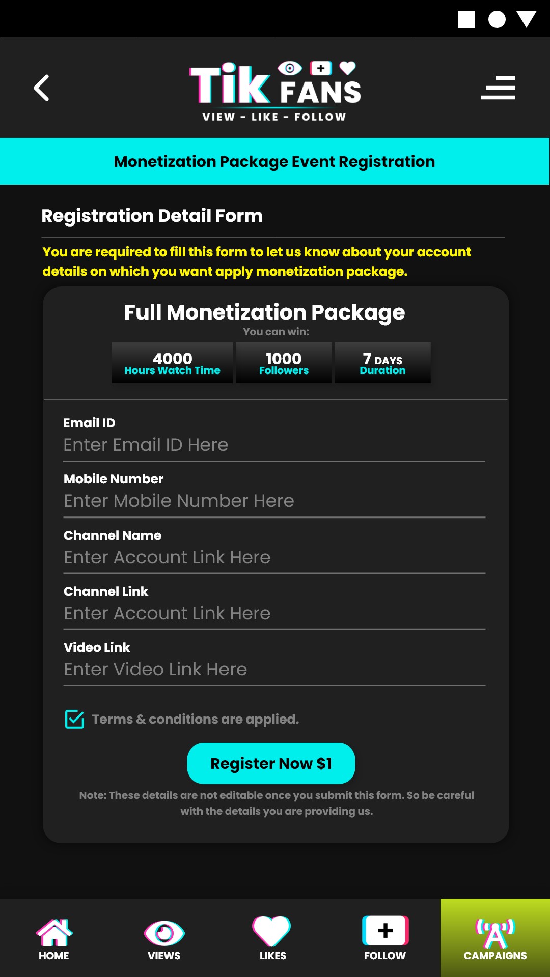 MyTikFans Get tik-likes views followers has no affiliation with the Tik Tok application, Music.ly, or ByteDance.