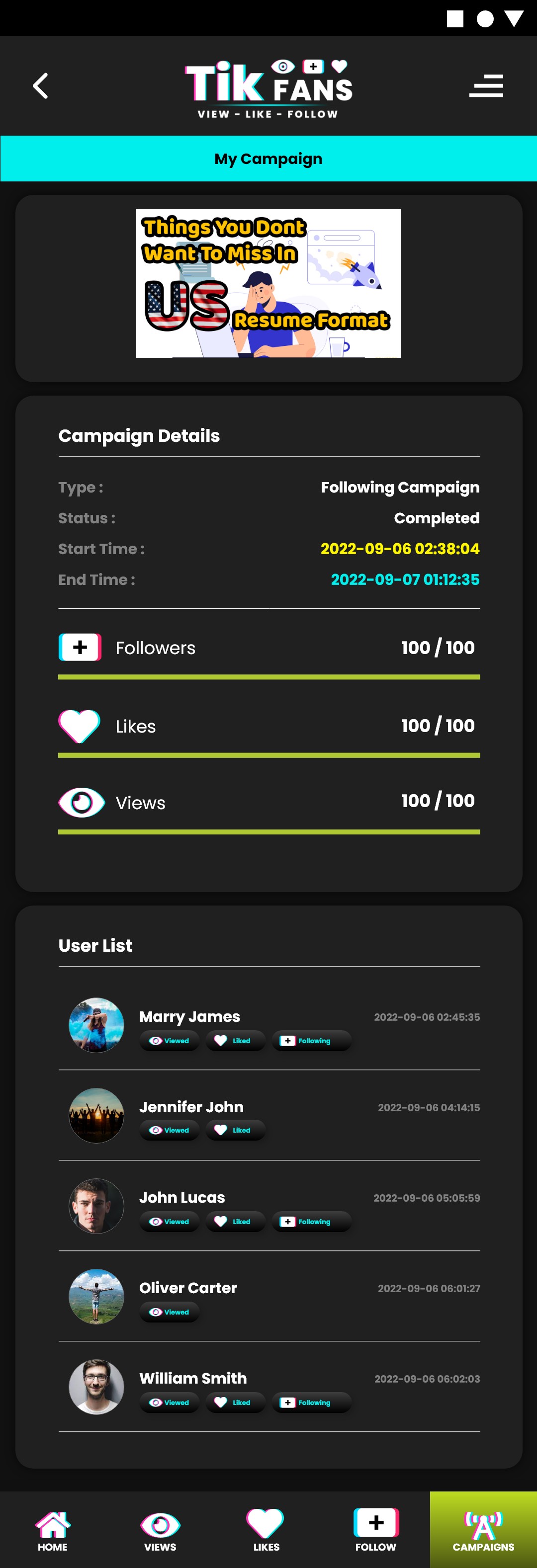 With MyTikFans powerful tools, you can grow your tik-followers in millions. Get an overview in this app, apply different captions to your best video, then post them on your tik media, you may get thousands of followers, likes, even more.