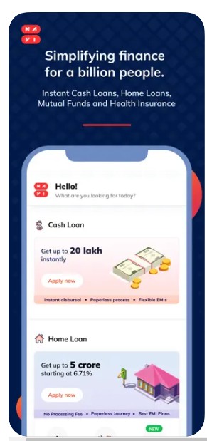 Navi provides Home loan, personal loan and health insurance app. Navi is a digital app that provides simple, affordable, and accessible financial products and services.