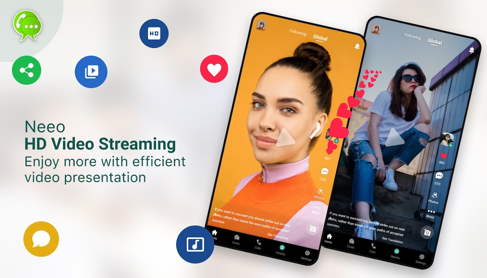 Neeo social features help you express yourself and connect with the people you love. Be a part of Neeo social and upload your images and videos from the gallery and take a live picture. Make your post more attractive by using amazing color effects. And share it publicly and privately. With Neeo social, discover video content from creators you already love, or new accounts you might like or discover the latest trends.