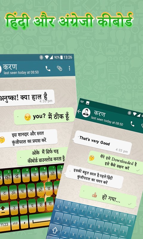 Enjoy Hindi writing English typing in best New Hindi taping Keyboard 2018. This is two in one keyboard you can type English words and Hindi alphabet at the same time without changing Easy Hindi English keyboard.