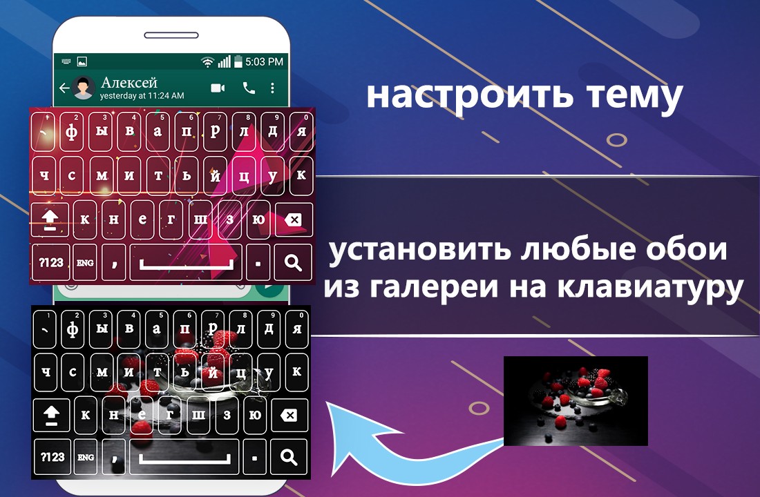 Add a different picture as keyboard themes on your device with this English to Russian keyboard.