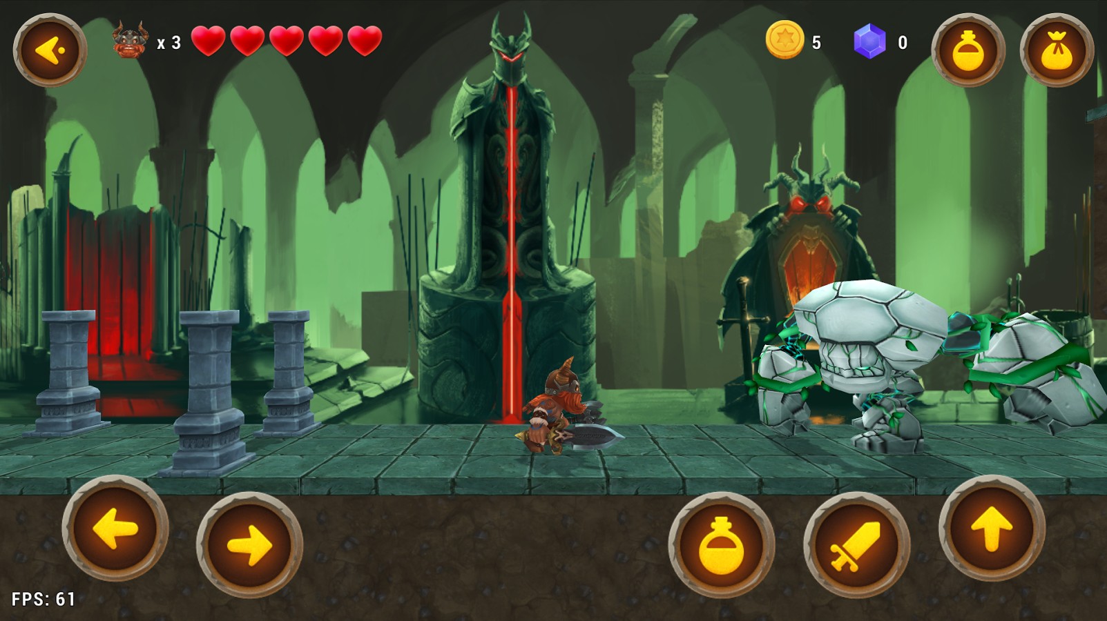 Jump, chop, spin and stab to defeat monsters, avoid traps and collect coins, gems and other valuable items. Battle against challenging bosses and evil gods. Find the hidden treasure rooms and the gateways leading to the bonus levels.