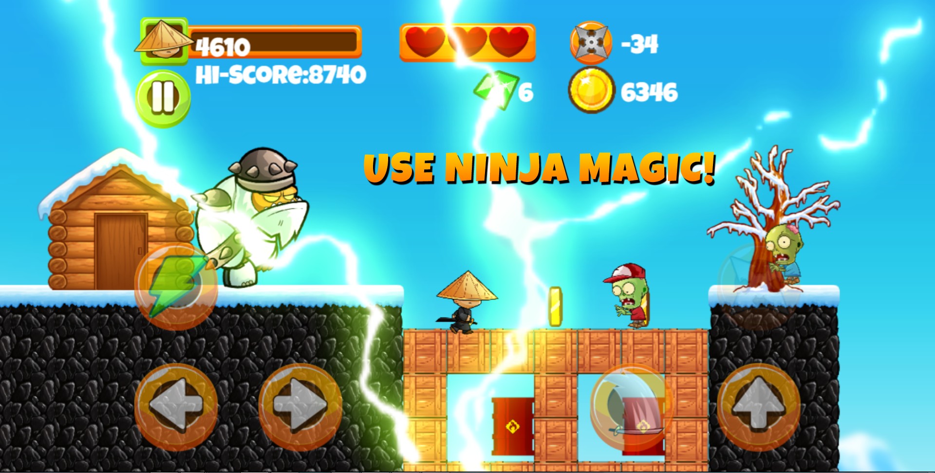 -You can use Ninja star (shuriken) and Ninja Magic as extra power to defeat enemies more easily.
