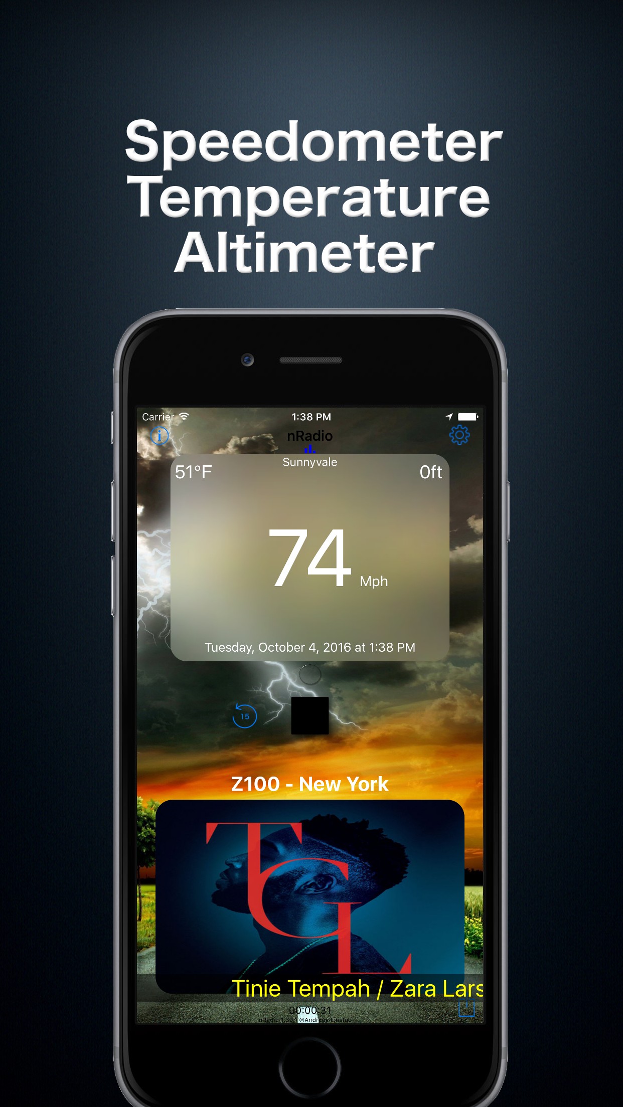 While listening to radio on the move, use the app's built-in speedometer. When not, use the alarm clock with nightstand mode and gently wake up to your favorite radio-station in the morning.