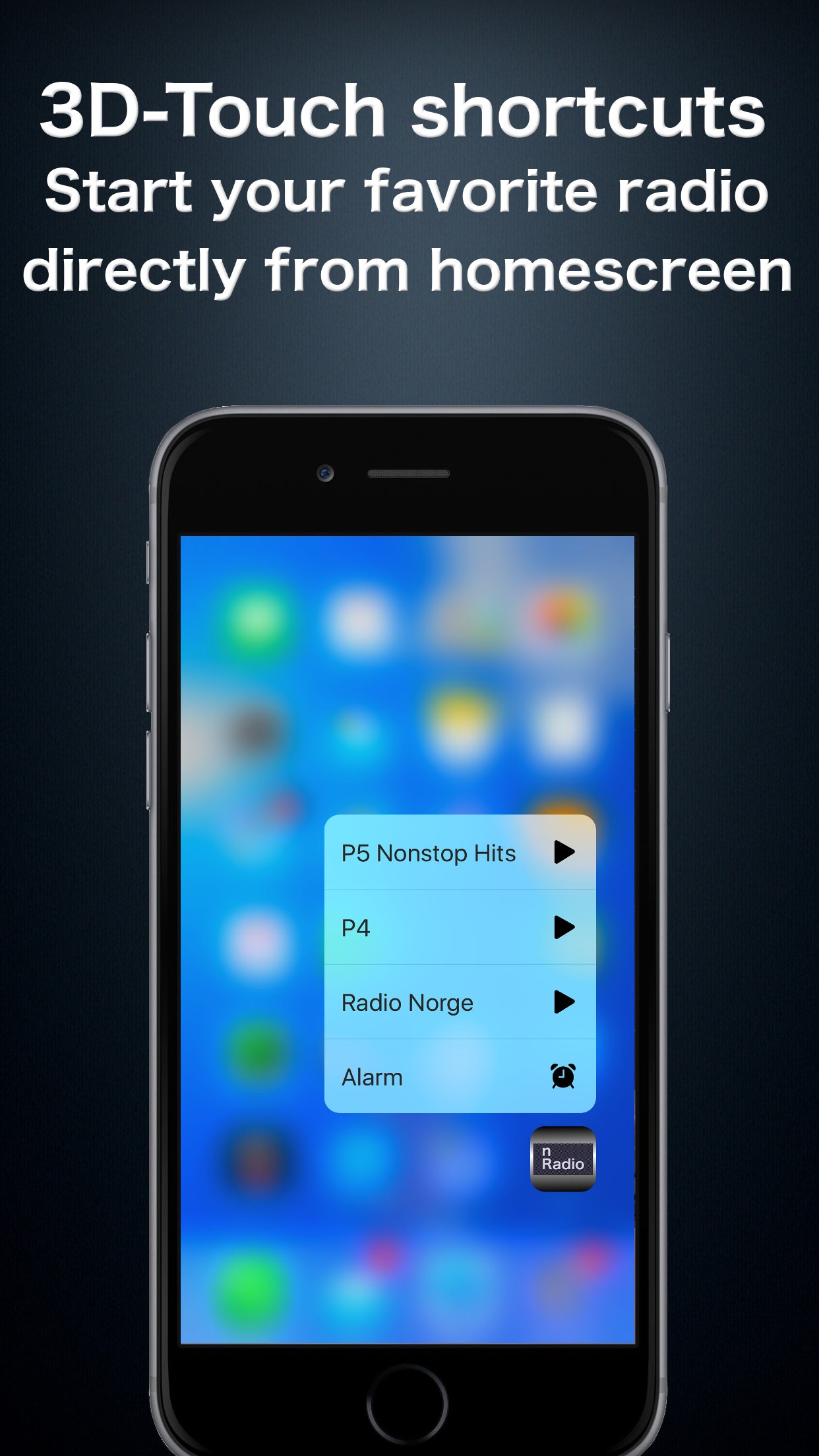 Start your most used radios directly from the home-screen, via 3D-Touch. Browse radios from 49 countries with over 20.000 radio stations. You can also add other radios manually if you know the address.