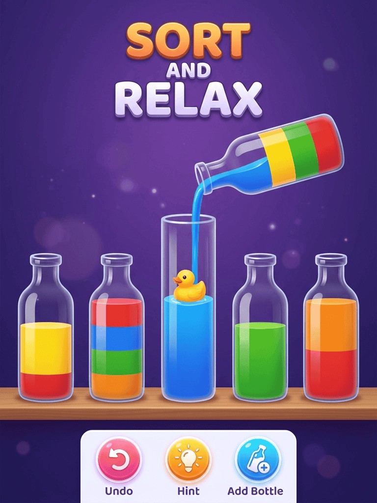 Stuck on a tricky liquid sort puzzle? Use the Hint system for a gentle nudge in the right direction. Made a wrong move? Tap Undo instantly. Need more space? Add an extra tube with one tap. These tools help you enjoy the sorting game without draining your resources.