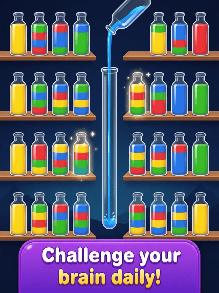 Download Water Sort: Color Pour Puzzle and enjoy a fair, relaxing water sort experience. Sort the colors, clear your mind, and enjoy the flow.