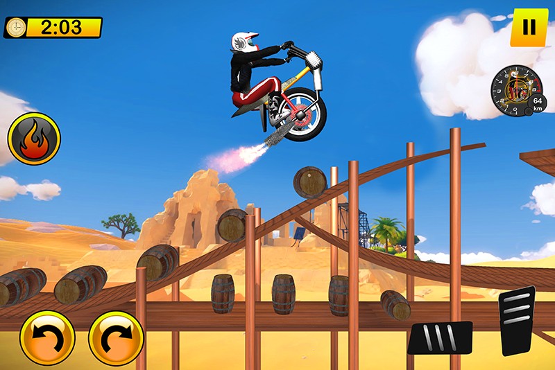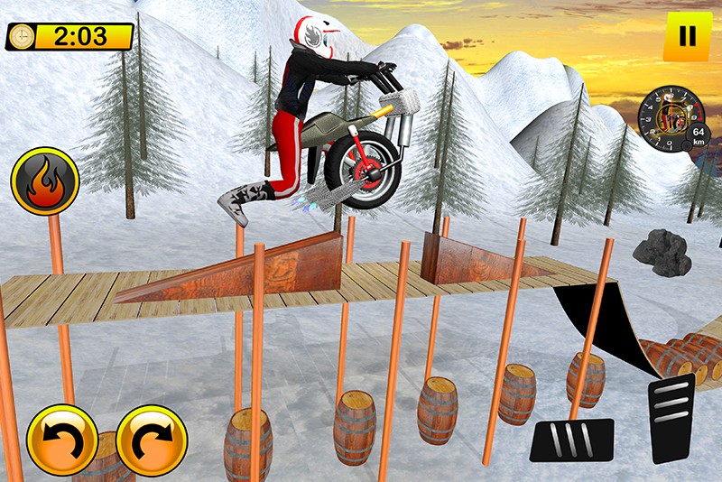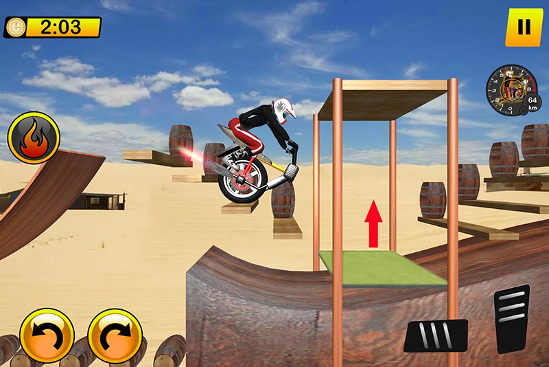 You may have play other stunts bike games but here you can experience real unique wheeling experience on impossible tracks by performing extreme stunts. The narrow tracks for single wheel riding are build upon snow, desert and jungle environments. This is a new One Wheel Bike Stunts Game in which you will drive bike across world's impossible tracks. As a stuntman rider show one wheel racer skills on sky high ramps. Be the king of unique wheeler bike by showing daredevil biker stunts skills.