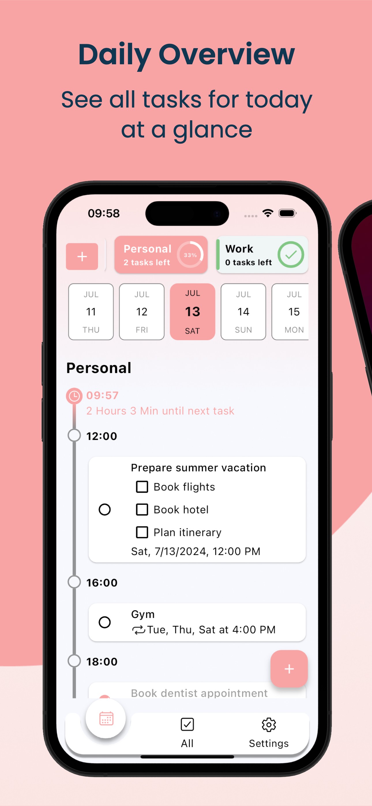 • Daily Planner Overview: Start each day with a clear, structured overview of your tasks. Prioritize what matters most and plan your day efficiently.
