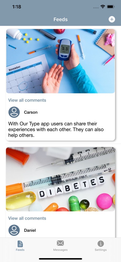 Here is the description of the app: Our Type is a forum made for type 1 and 2 diabetics and caregivers. It is a way to communicate through posts and messaging and to seek friends with this condition.