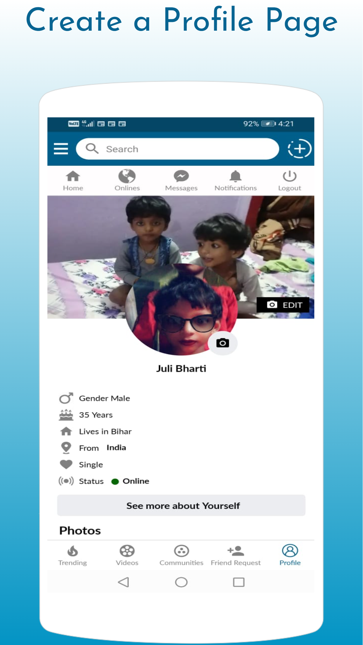 To make a profile and details your biodata like age, interests, hobbies etc.