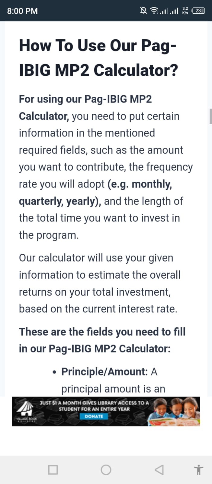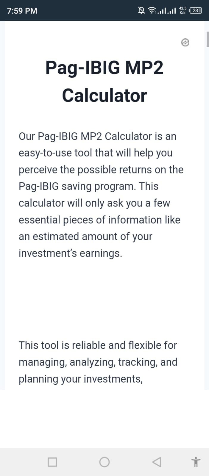 Pag-IBIG MP2 Calculator is an easy-to-use tool that will help you perceive the possible returns on the Pag-IBIG saving program. This calculator will only ask you a few essential pieces of information like an estimated amount of your investment’s earnings.
