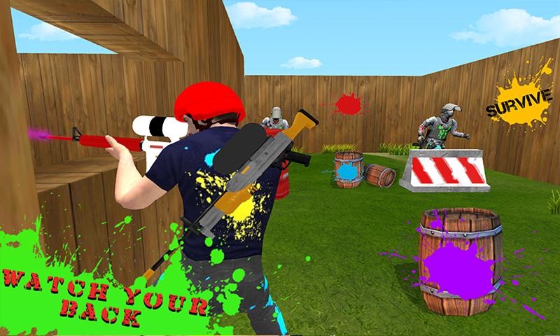 • Choose your favorite paint ball shooter to combat.