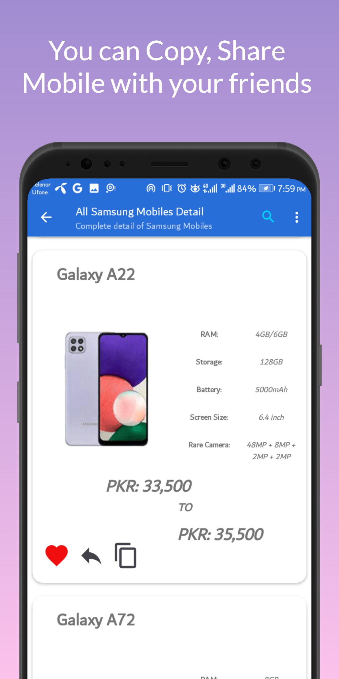 Another most useful function of this PakMobile Application is that you can share information about a specific mobile to your friends and relatives via Facebook, WhatsApp, Instagram, Text Message, Signal, Snapchat and any other messaging app available.