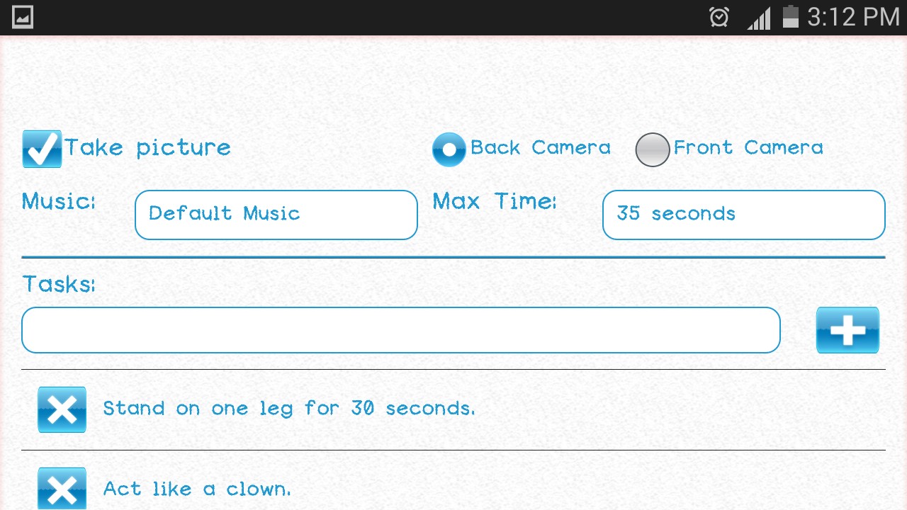 2. If the app's default forfeits/tasks are not to your liking, you can remove some or all of them and add your own tasks.