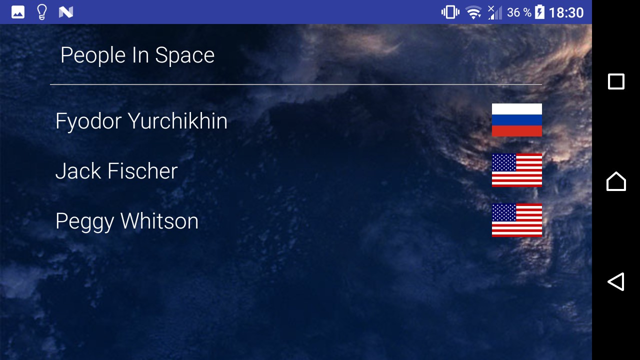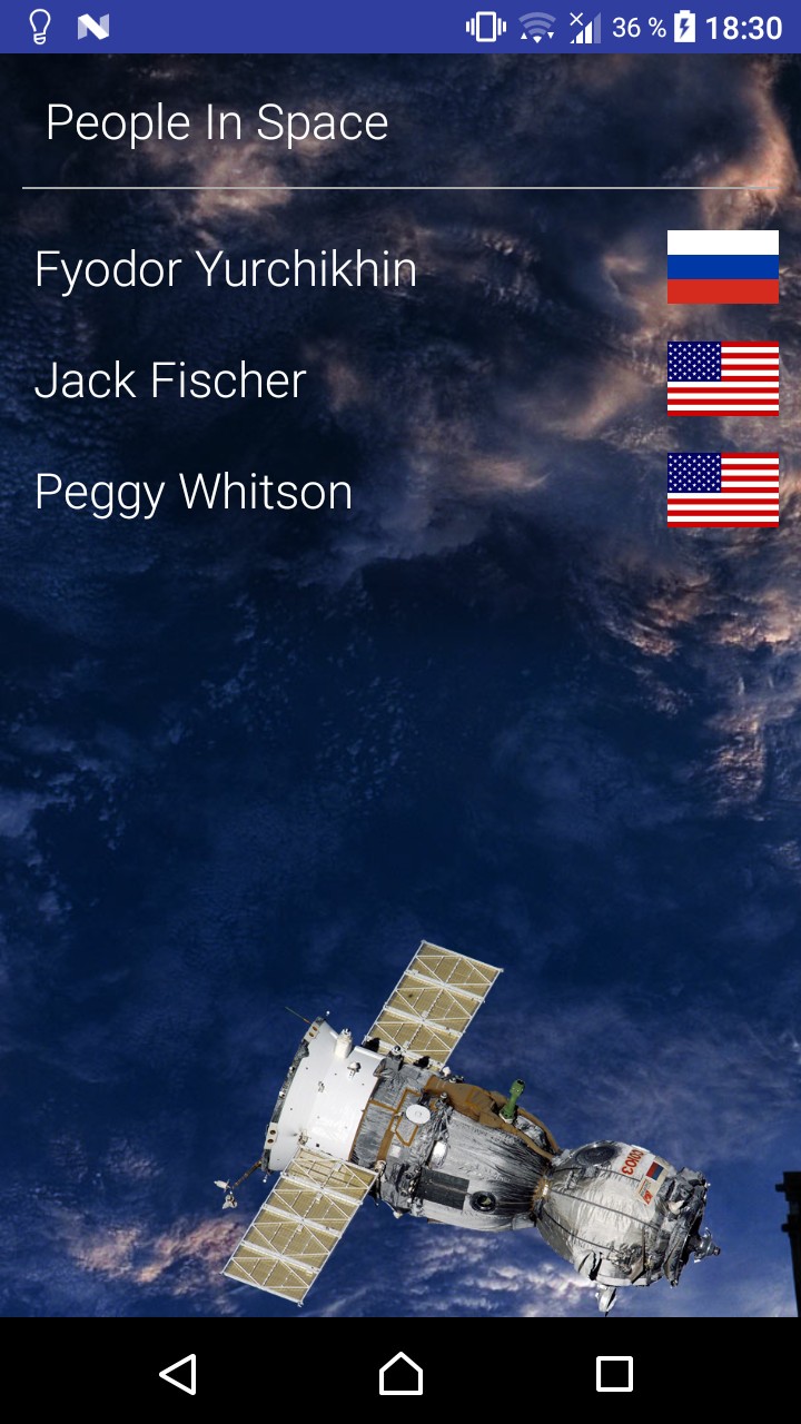 Application provides easy to use interface. Main list consists of name, surname and nation of each astronaut. By clicking on an astronaut, you can see his or her biography on the Internet.
