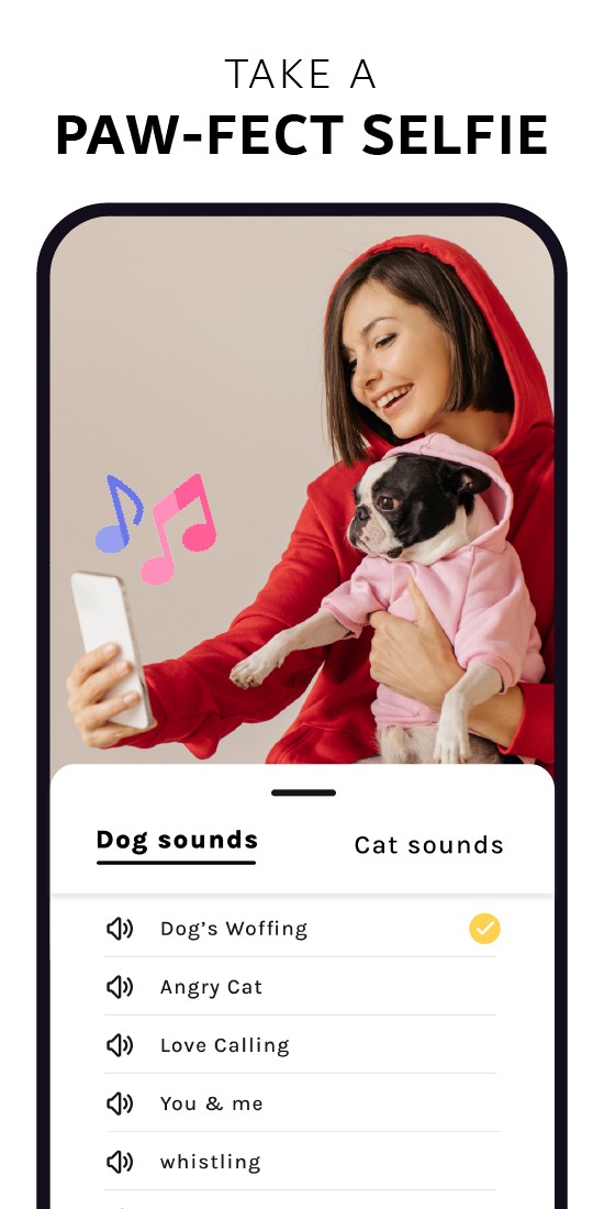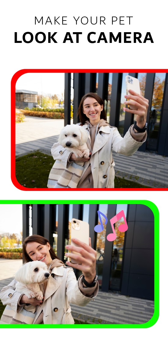 - This app has variety of pet distraction sounds to attract dogs attention and also, sounds to attract cats attention. Along with all these, this best pet photography app also has sounds that will make your dog tilt their head and sounds that make cat happy.