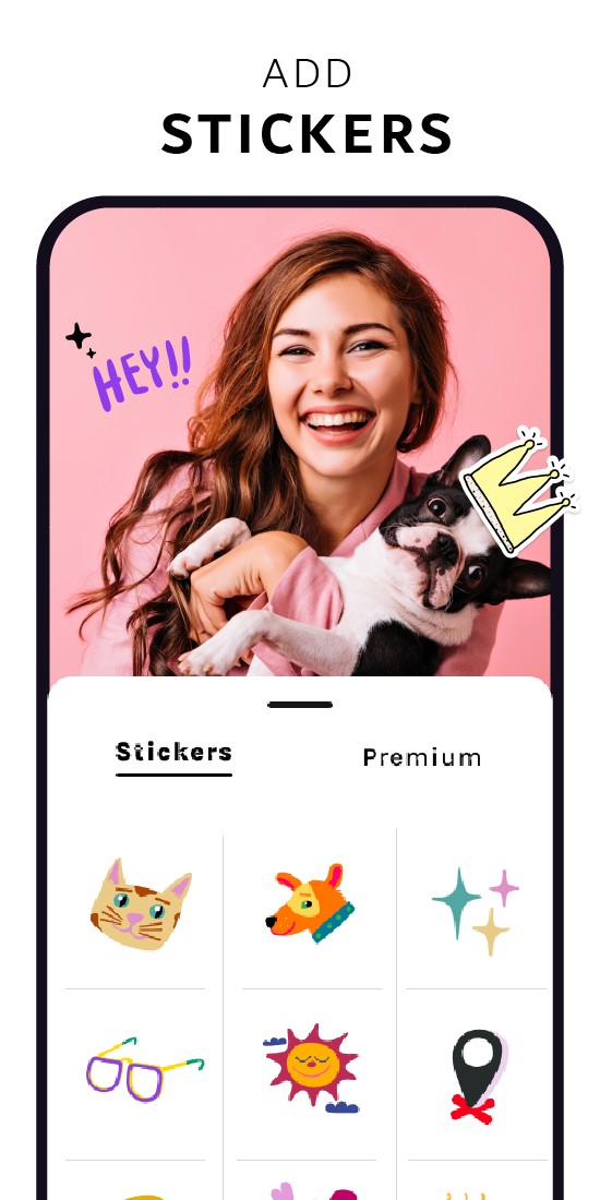 2. Stickers: This app provides hundreds of cute pet stickers which you can add after clicking your pet's photos as well as after clicking your own normal photo