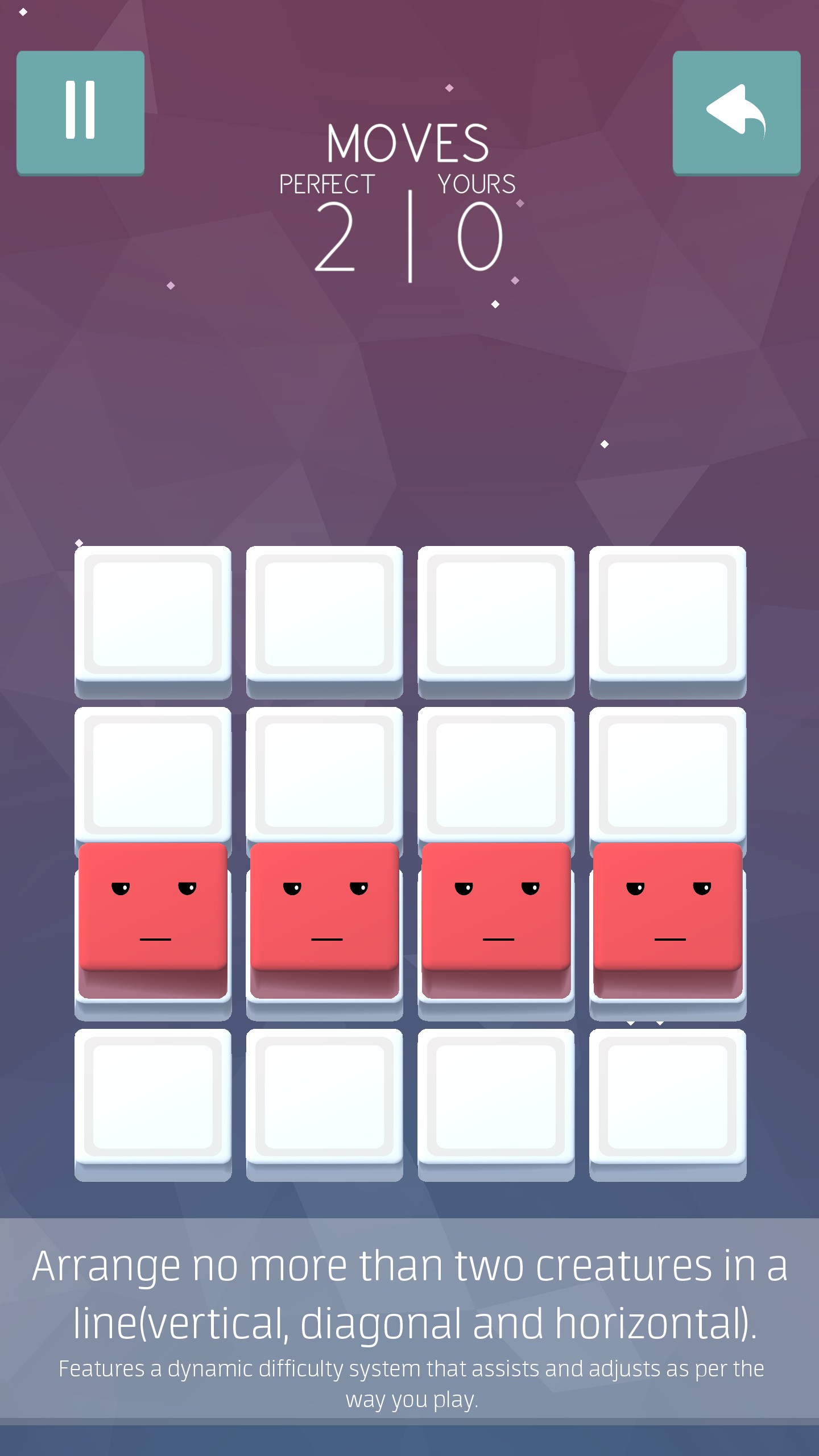 Phase Spur is a casual brain puzzle game with cute little creatures. Phase Spur features an unique reverse match 3 gameplay. When the creatures are happy, their spirit and cuteness endear everyone, so much so, it’s easy to get carried away by their cuteness. However, when they are disturbed, they can be quite annoying. So, here's a thing, MAKE THEM HAPPY! The task is, arrange no more than two creatures in a line. As they are adamant in nature, no three creatures (not more than two) can exist along a line (vertical, diagonal and horizontal) from their point of view.