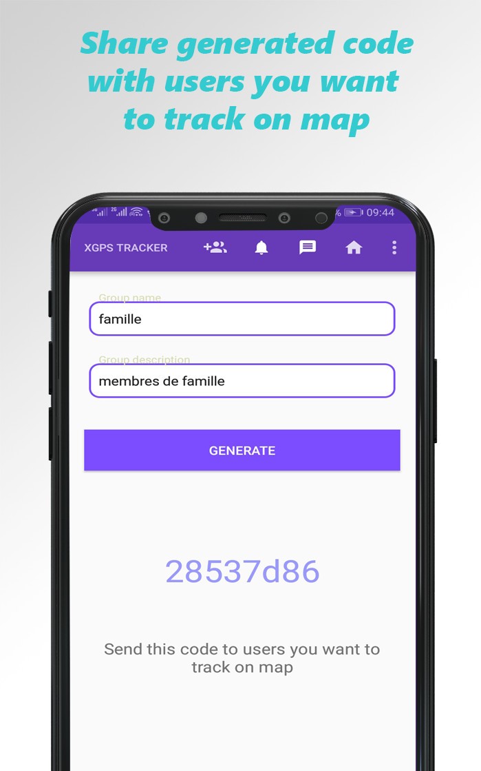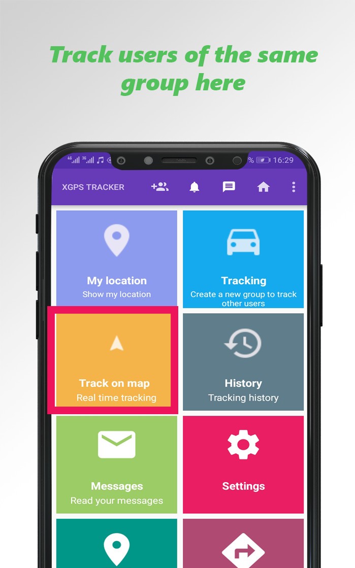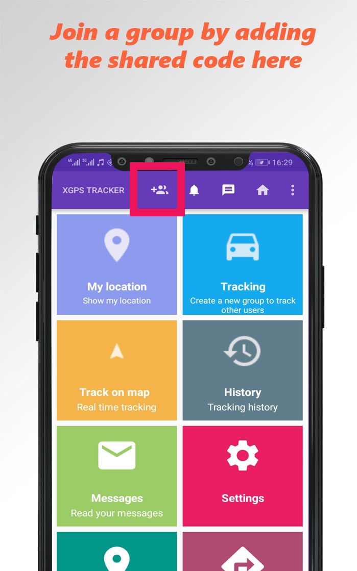 To join a group tap on join a group icon on the toolbar or main menu, then enter the received code, congrats, now click on track on map on main screen to start to see the location of your group members.