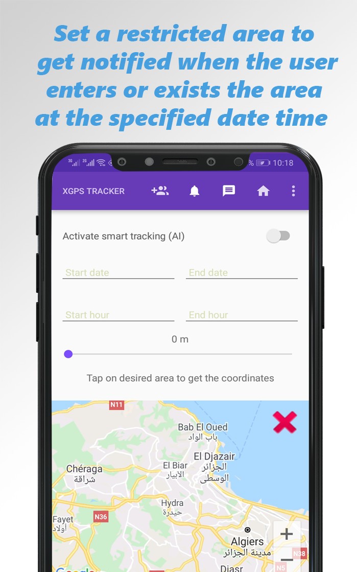 Use geofences to restrict your tracked users or objects to specific areas and get notified if the user enters or quits the area, you can use this feature to know if your kids are at school, your employees or drivers are in their assigned areas etc.