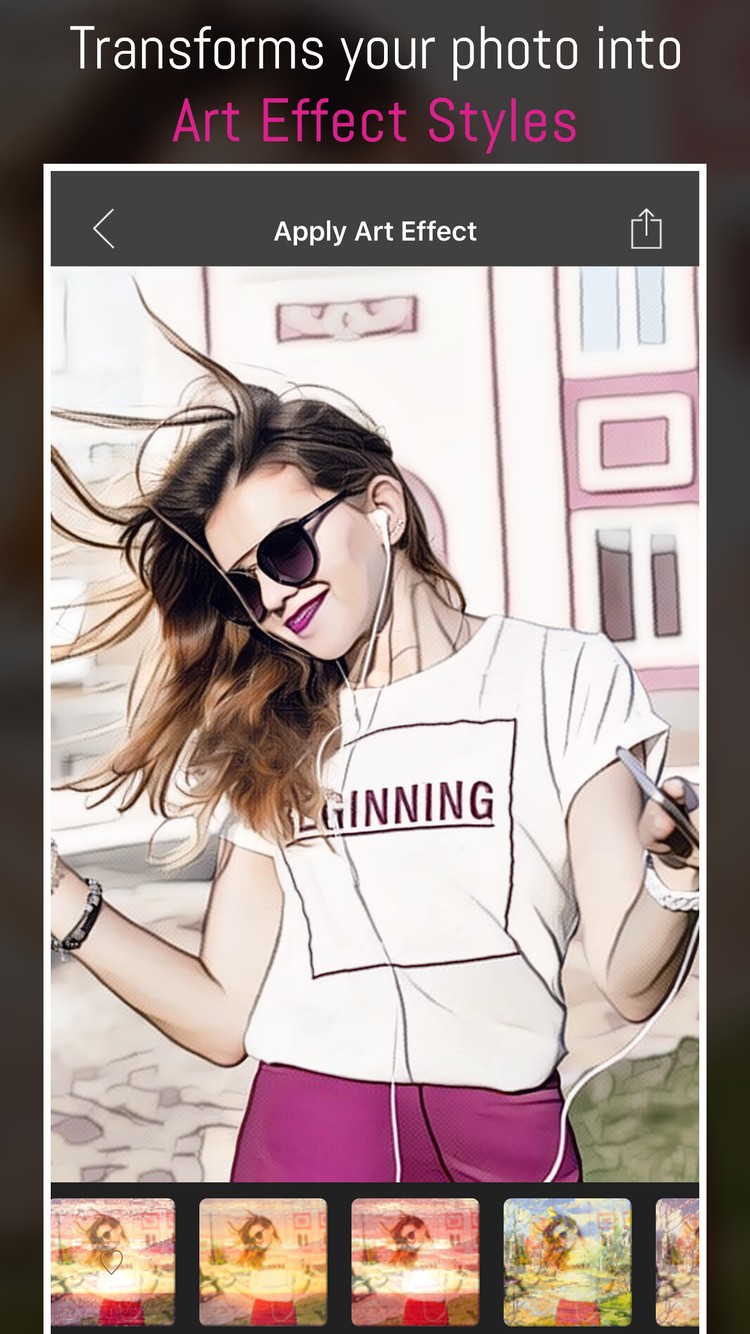 Apply our Stunning filters and cartoon effects to your photos and have fun by sharing on social media.