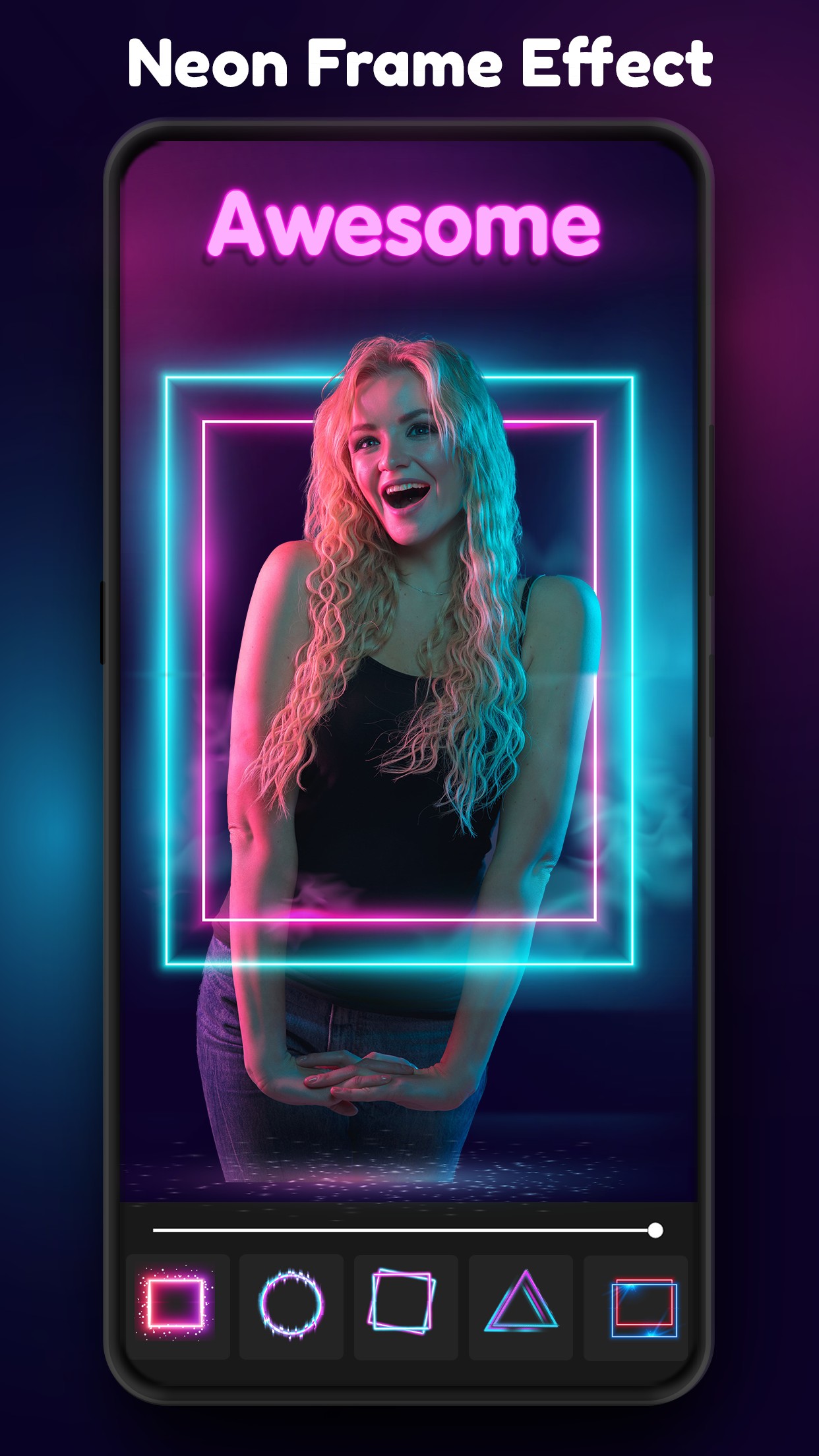 Photo Editor Neon Effect is the best tool for editing photos and creating cool photo effects. It's a very easy-to-use, powerful, flexible, and fun app to help you express your thoughts and feelings through creating awesome photographs with different effects, stickers, text, and other cool stuff.