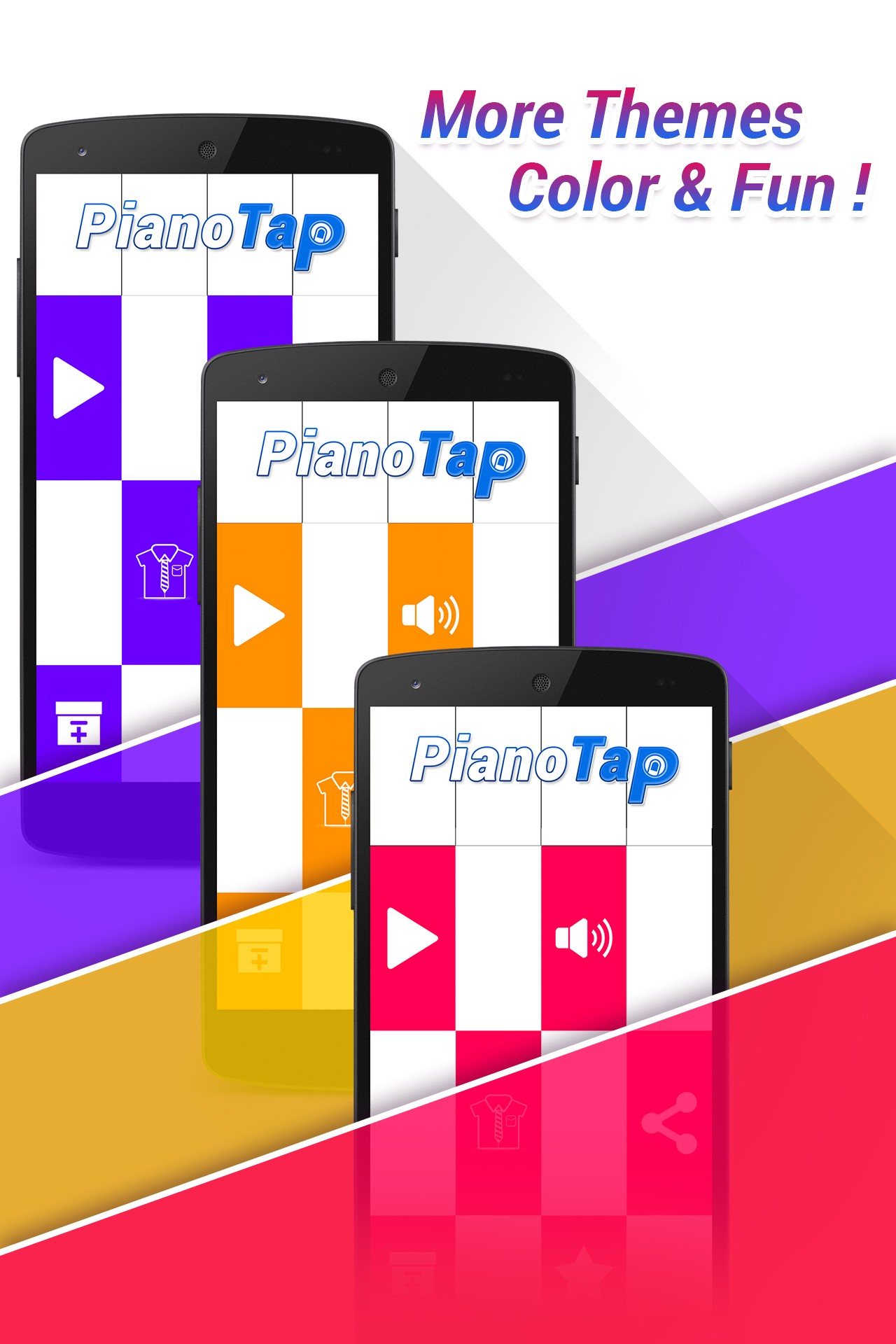 Piano tap game has Many awesome game modes that you will find nowhere else. Game modes like Lightning , bomb , reverse , double tap , cloud and many more. Piano Tap game also has many awesome color themes to choose from. Select your favorite piano color theme and play as long as you want.