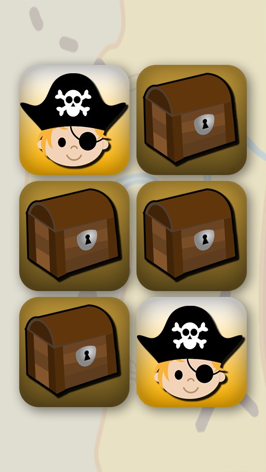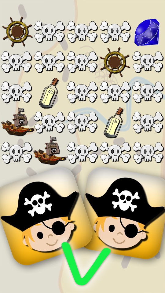 You want your kid to have fun and improve his skills in problem solving, concentration and memory at the same time? Then Pirates Games free is the right pirate app for you! This free app contains 6 levels of pirate matching games (memory games) FOR FREE!!!